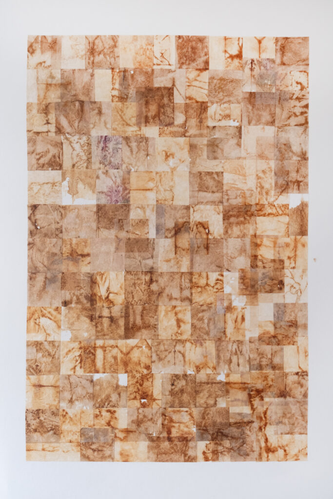 Wir freuen uns, die beiden Solinger Künstlerinnen Emma und Ela Schneider im Rahmen von Kunst in der Kanzlei begrüßen zu dürfen. Dabei sind die Beiden keine Unbekannten in der Solinger Kunstszene. Seit 2024 führen Mutter und Tochter die bekannte Gräfrather Galerie Art-Eck. Schon der Titel ihrer Ausstellung „Die Walnuss im Roibusch verweist auf die unterschiedlichen Werkstoffe der Künstlerinnen. Während Ela Schneider sich auf die Arbeit mit Holz spezialisiert hat, nutzt ihre Tochter Teebeutel als Werkstoff. Doch so unterschiedlich die Werkstoffe auch sind, bei beiden steht das Sammeln am Beginn des Schaffensprozesses. So sammelt Ela Schneider Holz und Hölzer in allen Variationen, das kann von einem Baumstamm über Holzabfälle aus der Produktion von Messergriffen bis hin zu einer alten 50er Jahre Musterbuch-Sammlung reichen. Emma Schneider hingegen sammelt alte Teebeutel – zumeist von Schwarztee -, die sie nach Farben und der Intensität der Verfärbung sortiert. So schafft sie sich den idealen Ausgangspunkt für ihre Werke.