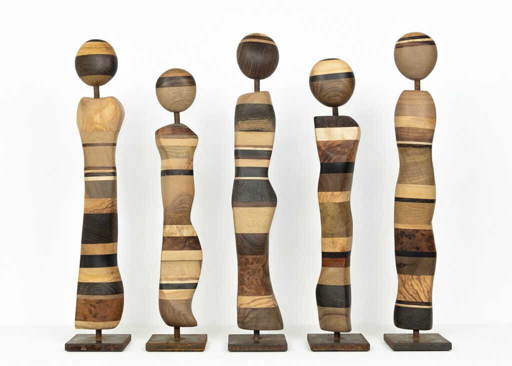 Wir freuen uns, die beiden Solinger Künstlerinnen Emma und Ela Schneider im Rahmen von Kunst in der Kanzlei begrüßen zu dürfen. Dabei sind die Beiden keine Unbekannten in der Solinger Kunstszene. Seit 2024 führen Mutter und Tochter die bekannte Gräfrather Galerie Art-Eck. Schon der Titel ihrer Ausstellung „Die Walnuss im Roibusch verweist auf die unterschiedlichen Werkstoffe der Künstlerinnen. Während Ela Schneider sich auf die Arbeit mit Holz spezialisiert hat, nutzt ihre Tochter Teebeutel als Werkstoff. Doch so unterschiedlich die Werkstoffe auch sind, bei beiden steht das Sammeln am Beginn des Schaffensprozesses. So sammelt Ela Schneider Holz und Hölzer in allen Variationen, das kann von einem Baumstamm über Holzabfälle aus der Produktion von Messergriffen bis hin zu einer alten 50er Jahre Musterbuch-Sammlung reichen. Emma Schneider hingegen sammelt alte Teebeutel – zumeist von Schwarztee -, die sie nach Farben und der Intensität der Verfärbung sortiert. So schafft sie sich den idealen Ausgangspunkt für ihre Werke.